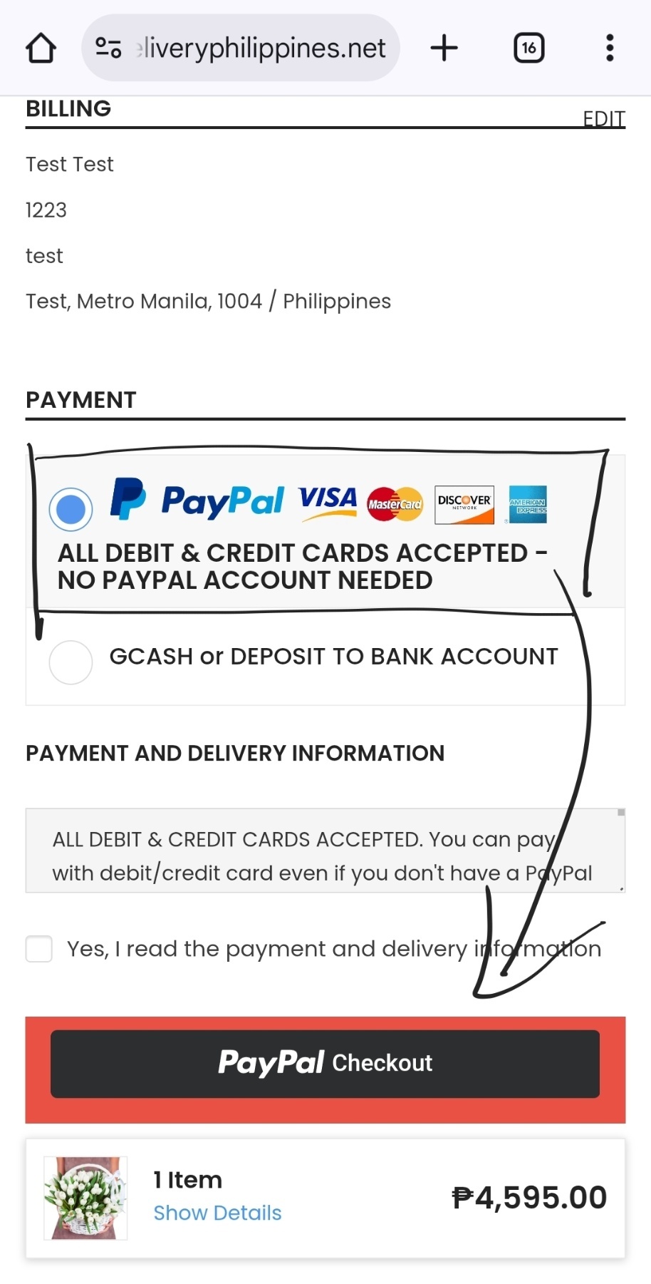 3. Choose the payment option PAYPAL-DEBIT/CREDIT CARD